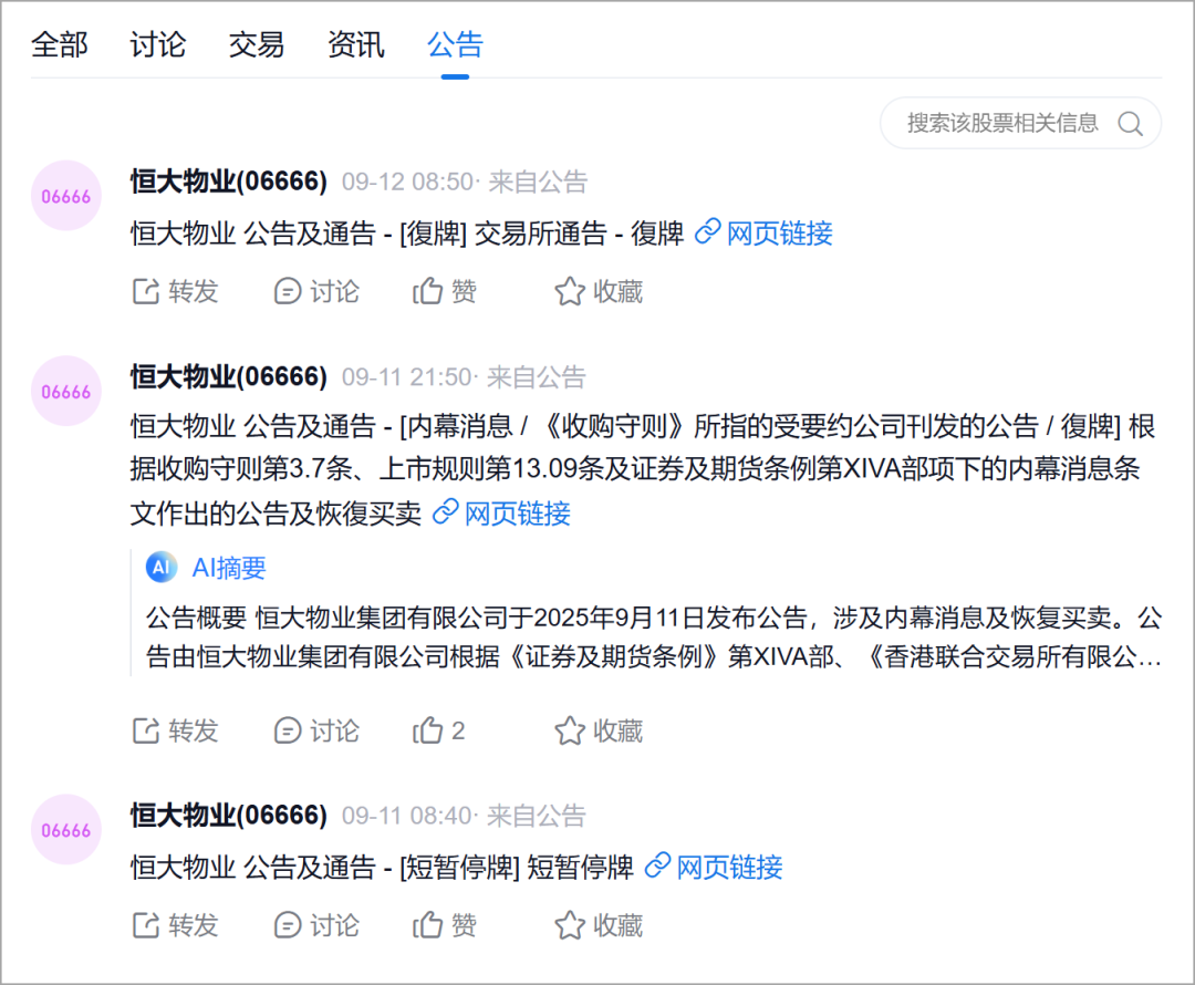 对比同板块恒大物业2025年9月的停牌操作,新大正的流程不专业之处更为明显,间接佐证了内幕信息泄露的真实性。