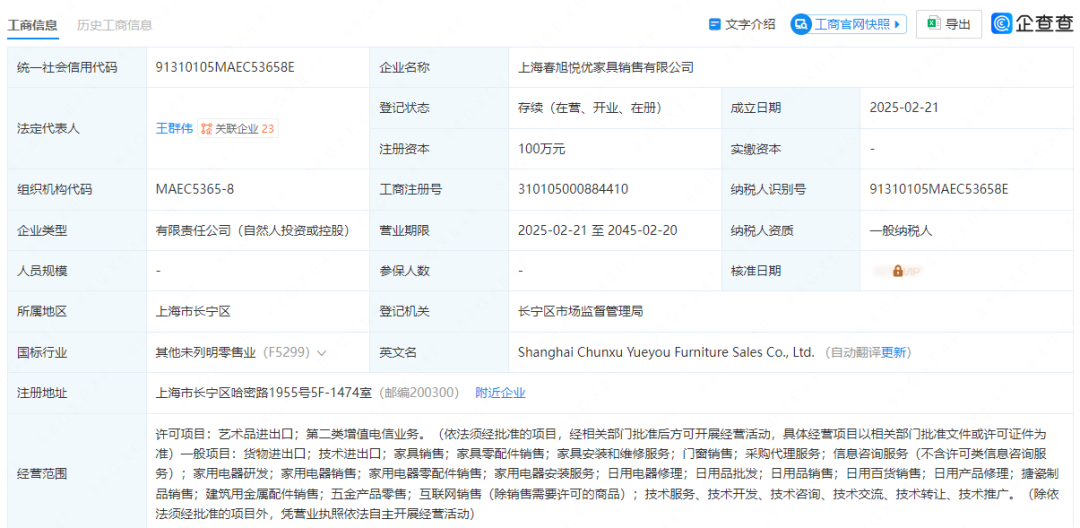今年以来,顾家家居先后新设两家子公司,成都顾家希百家居有限公司、上海春旭悦优家具销售有限公司,前者经营范围覆盖家用电器及家用电器零配件销售,后者经营范围包含家用电器研发、家用电器销售、家用电器安装服务等。