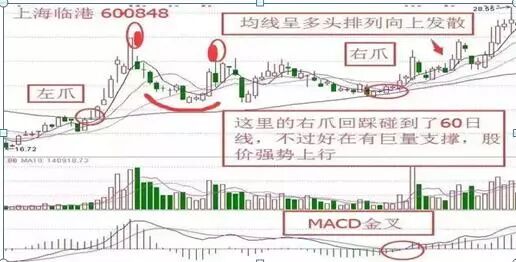 ? 右爪比左爪位置要高。前面的上涨最好是连续涨停,放出巨量,右爪的量要越小越好,证明洗盘非常成功。突破蛤蟆头时一定要放量。