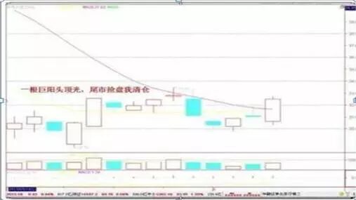 口诀1:一根巨阳头顶光,尾市抢盘我清仓。由于大家接连发现了底部的大阳线启动和不断地追进,权证的涨幅会高达十几、二十几个点,以至于翻番。如果直到收盘时仍在抢盘,K线将收出一个光头的特大阳线,那我则在收盘的一瞬全部清仓。因为次日往往大幅低开,或者高开后迅速下跌,将无法保住昨日的收益。