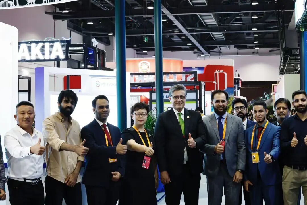 在采访中,Khalil Hashmi大使表示:“巴基斯坦重点聚焦金融科技、电子商务和人工智能三大领域,期待与中方企业深化合作,共同挖掘市场机遇。当前已有大量绿色技术和数字技术可投入实际应用,有效提升行业效率、实现规模经济。我们已在国内推出数字技能培训项目,助力青年群体掌握数字技能,并将其应用于纺织、农业、采矿等传统行业升级。中国国际服务贸易交易会是一个卓越平台,汇聚了众多科技企业与解决方案提供商,不仅助力商业需求对接,更为两国文化交流搭建了桥梁。”