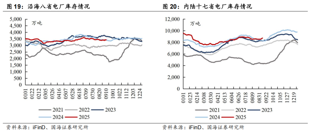按照煤炭工业协会数据,若按照2024年电力、钢铁、化工、建材在煤炭下游需求中占比分别为62%、15%、8%、8%计算,我们估算2025年8月四大行业带动煤炭消费同比+2.4%,增速较7月下降1.4pct,整体保持稳定。