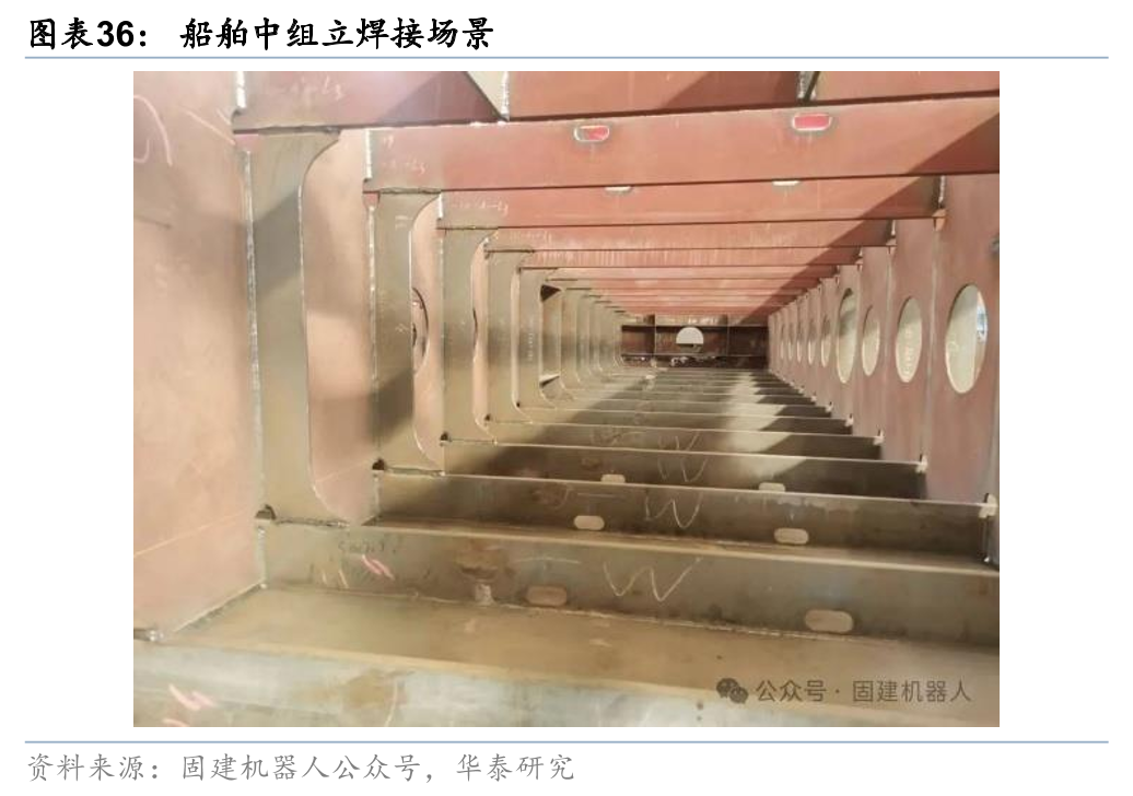 市场担忧免示教焊接机器人目前在钢构行业已呈现竞争加剧、盈利承压趋势,但我们认为突破厚板焊接、船舶中大组立等高壁垒场景或为破局关键。部分企业有望基于软件端全栈自研能力实现免示教焊接在各子系统的协同发展,更快针对终端需求痛点提升产品性能,巩固技术壁垒,在船舶等技术难度更高、设备价值量更大的差异化场景获得竞争优势。此外,免示教焊接技术还可平台化迁移到电力铁塔、工程机械等领域,助力行业突破现有边界。