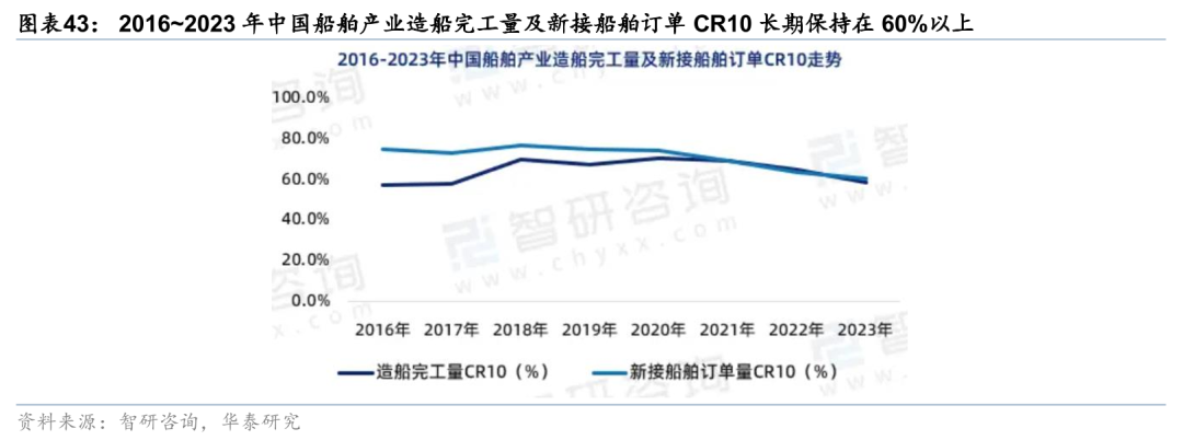 船厂规模大、资金实力强,对智能焊接设备价格敏感性较弱,引入尝试意愿较强。据智研咨询数据,我国船舶产业造船完工量及新接船舶订单CR10长期保持在60%以上,行业集中度较高、企业规模一般较大、资金实力较强。对行业龙头来说,对智能焊接设备价格敏感性较弱,有较强的承载能力。同时国家相关部门相继出台《推动大规模设备更新和消费品以旧换新行动方案》等政策支持船舶工业转型升级需求,先进智能化产线引入也有示范引领的作用,船舶企业引入尝试的意愿较强。