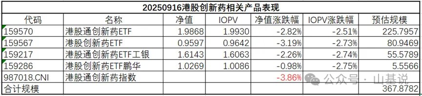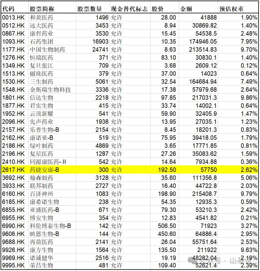 昨天的净值就更能体现我们的猜想——还是只有规模最小的那一只跟上了指数,这意味着他周五就已经买满了(也是得益于他的规模小)。比较糟糕的是,我们发现有两只产品接近跑输指数两个点,而昨天药捷安康涨了115%,但中证的港股创新药的ETF没啥涨幅,这意味着昨天国证港股通创新药指数所有的涨跌幅都是这一只股票贡献的(中证指数的没有纳入药捷安康)。