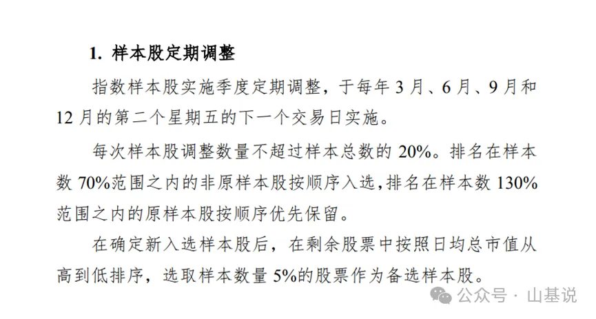 指数的定期调仓大家都清楚,一般来说指数公司会提前三到四天与基金公司沟通,基金公司一般来说会在生效日前后进行调仓动作。举个例子,9月第二个星期五收盘后生效,通常基金公司会将大部分仓位买在本周五收盘前,剩下一小部分仓位在下周买。