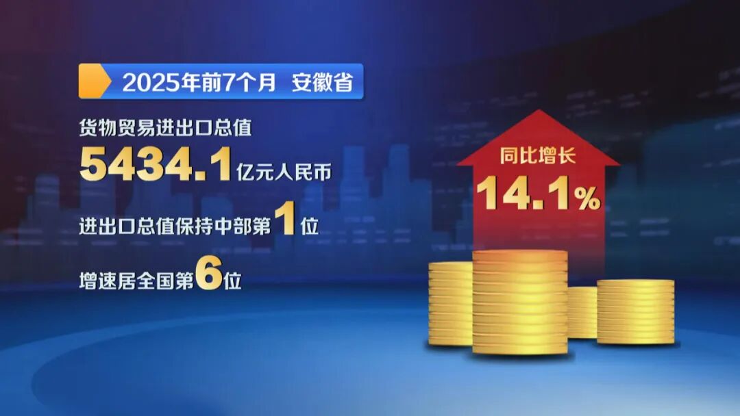 在一系列开放平台的推动下,今年上半年,安徽省全省实际对外投资15.6亿美元、增长9.8%,高于全国10.3个百分点,总量居全国第9位、中部第1位;新增1000万美元以上对外投资项目31个,其中汽车、水泥、锂电等优势产业对外投资9.6亿美元,占全省61.5%。实际到位外资120.5亿元,同比增长3.8%。前7个月,安徽省货物贸易进出口总值5434.1亿元人民币,同比增长14.1%,进出口总值保持中部第1位,增速居全国第6位。