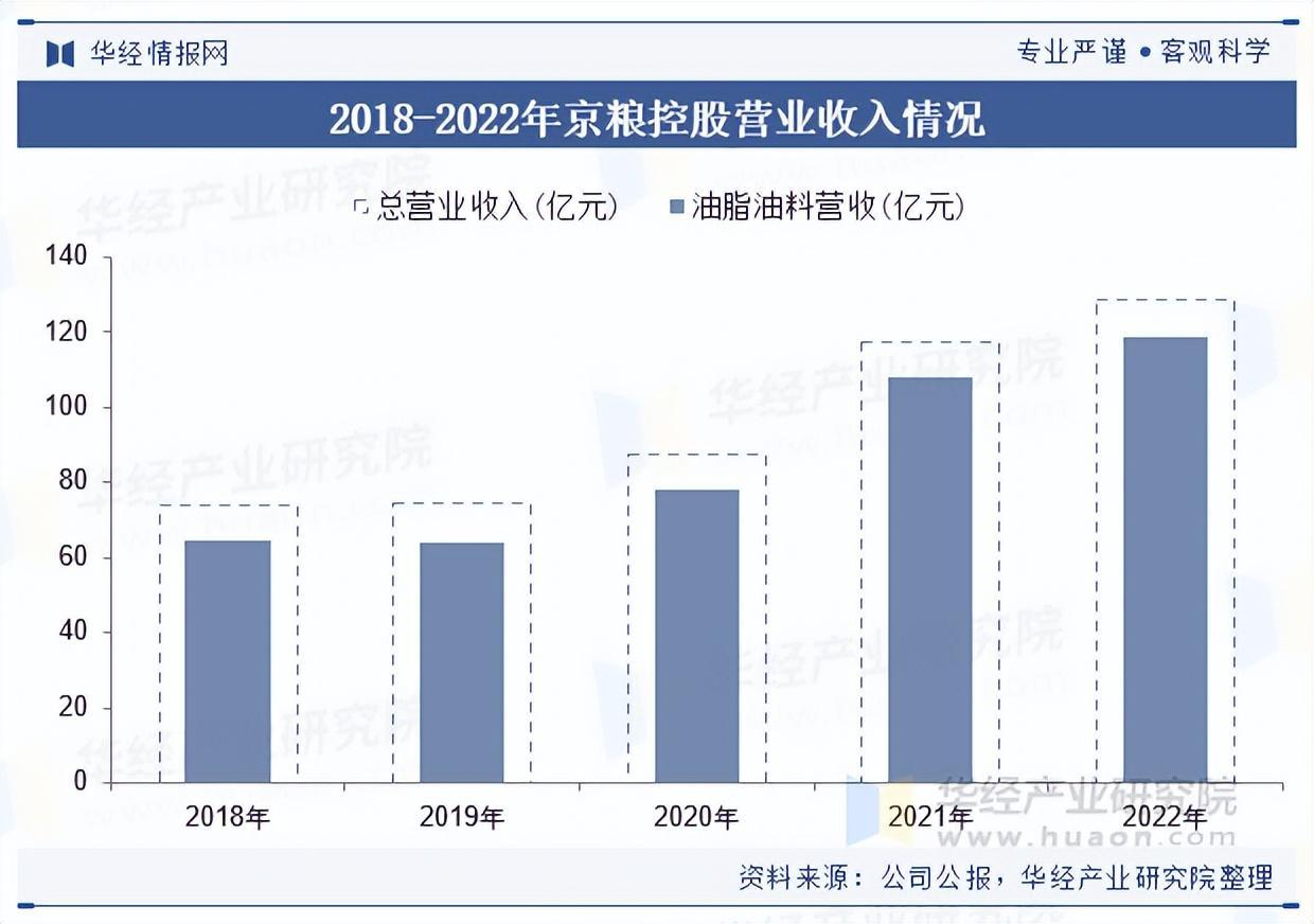 海南京粮控股股份有限公司主营业务为油脂油料加工、油脂油料贸易及食品加工。京粮控股司油脂油料加工及油脂油料贸易业务主要集中在京津冀区域,品牌包括“古船”、“绿宝”、“古币”、“火鸟”等,主要产品包括大豆油、菜籽油、葵花籽油、香油、麻酱等,在可比上市公司中位居上游。从营收情况来看,2022年的京粮控股总营收为128.58亿元;其中,油脂油料营收118.85亿元,占了总营收比例的92.44%。