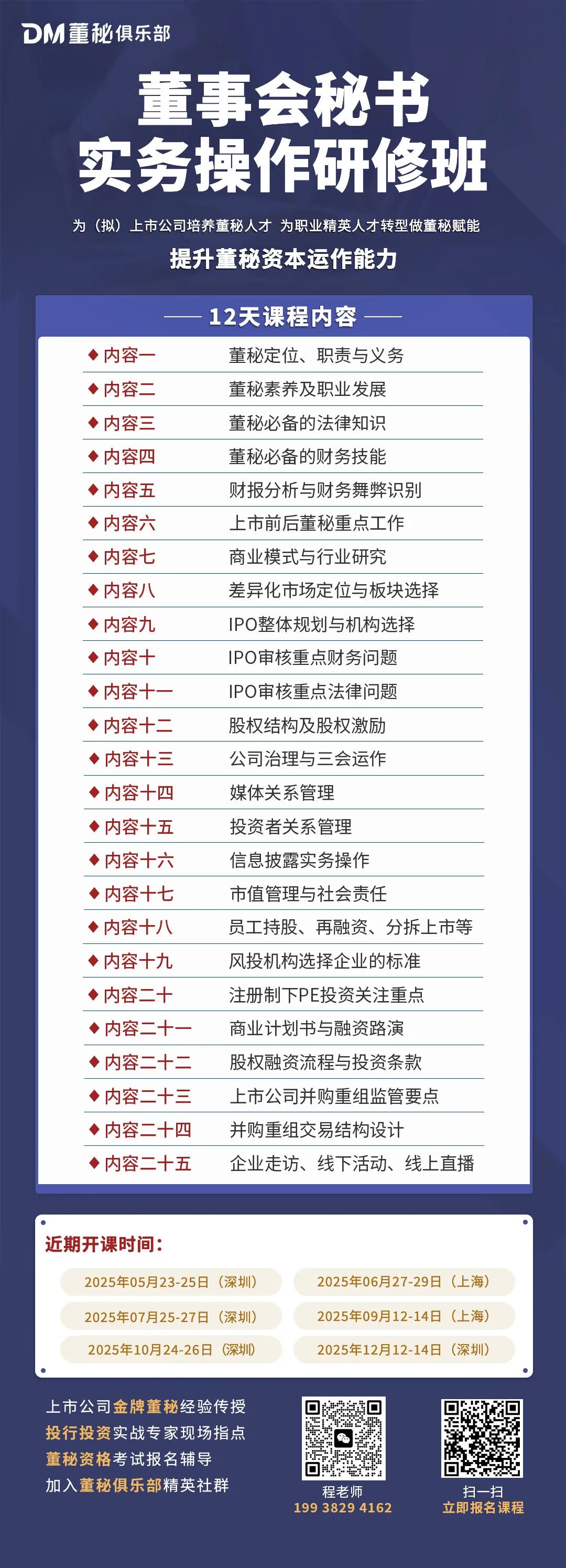 比如我们正在开设的《董秘研修班》,就是为此而准备的。