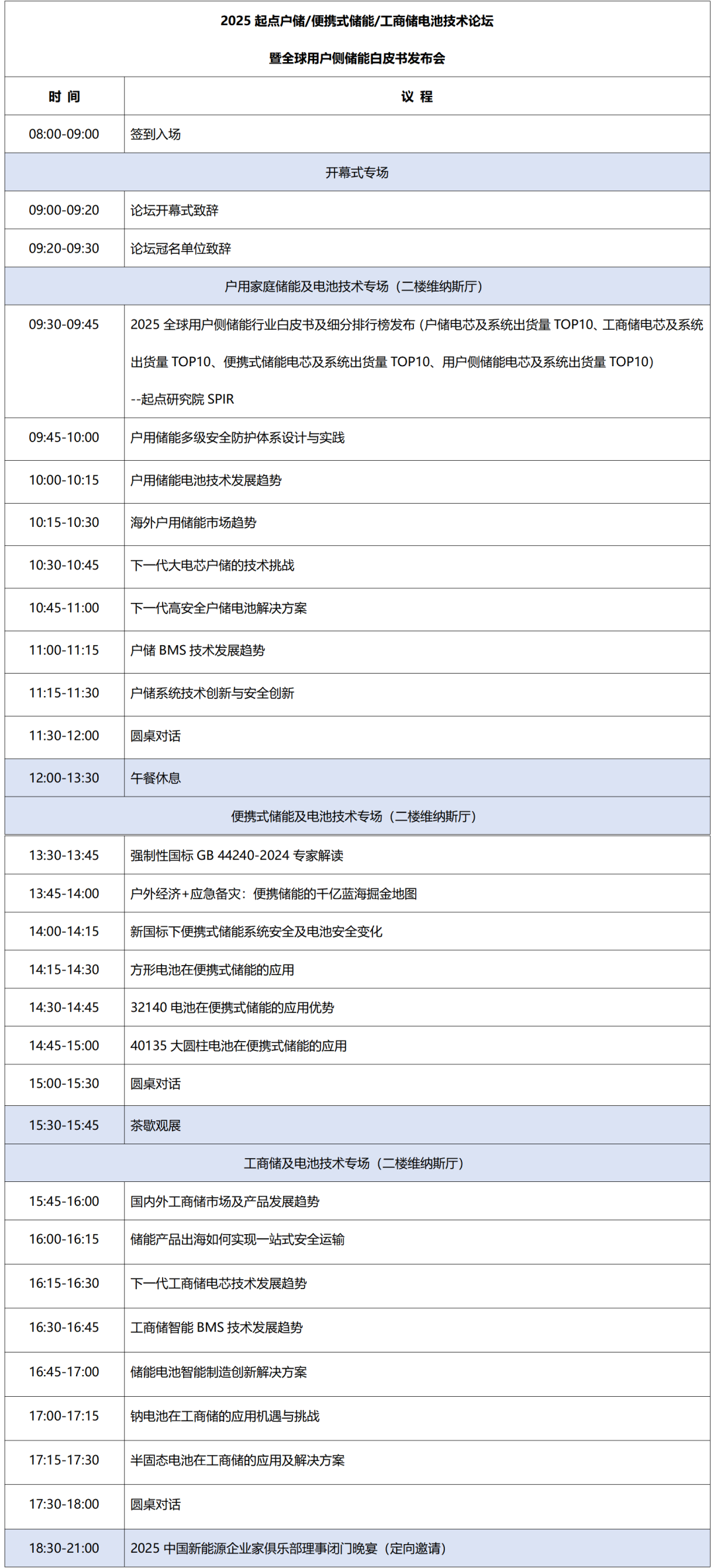 活动名称:2025起点户储/工商储/便携式储能电池技术论坛暨全球用户侧储能白皮书发布会