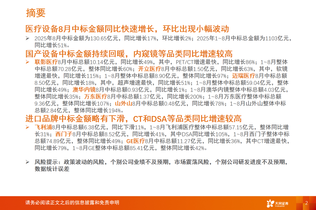 证券研究报告:《天风证券-医疗器械:医疗设备月度中标梳理——2025年8月》