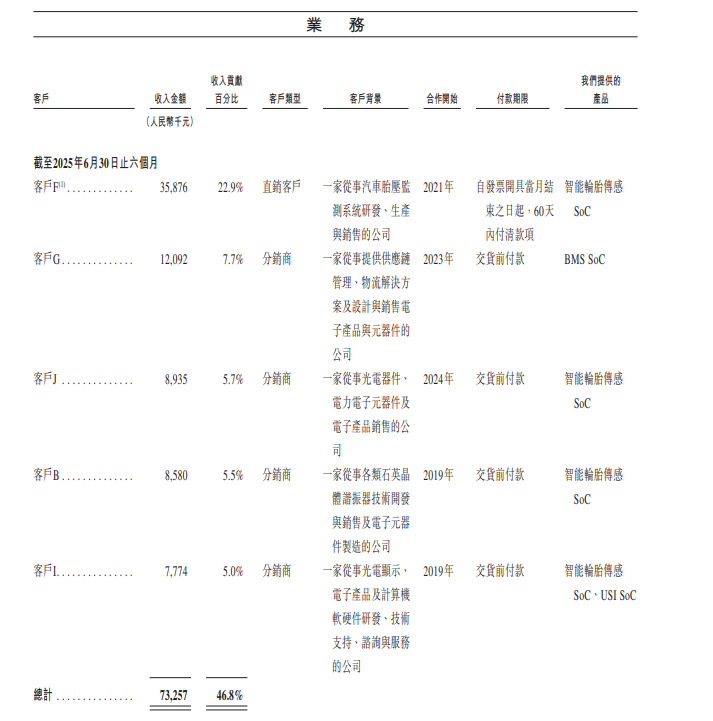 值得一提的是,客户F是琻捷电子股东旗下附属公司。客户F在2024年和2025年上半年都是琻捷电子的第一大客户,为琻捷电子分别贡献了期内总收入的25.2%和22.9%。