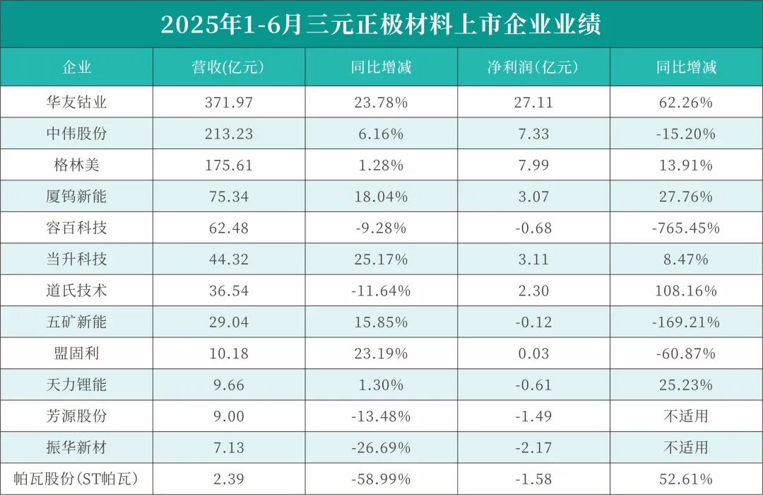 广东省电池行业协会秘书处对22家正极材料(含前驱体)上市企业2025年上半年的业绩、客户及产销量情况进行了梳理,希望能全面了解正极材料市场2025年上半年的发展情况。
