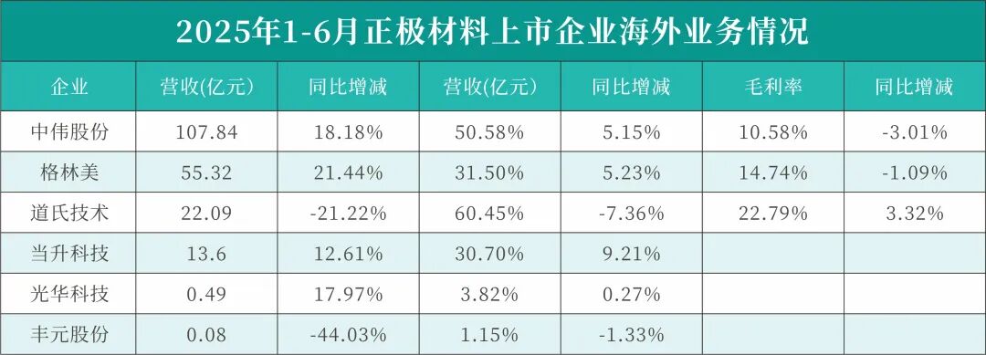 锂电正极材料企业2025年上半年海内外业务发展具体情况如下: