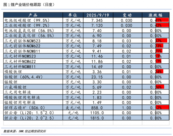 需求:下游进入到“金九银十”的旺季节奏中,动力端需求有释放预期,储能保持强劲。正极厂开始按照订单情况逢低补库。