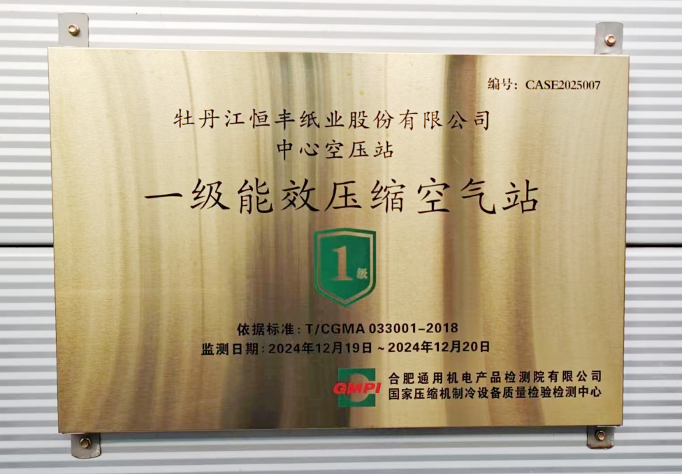 近日,牡丹江恒丰纸业股份有限公司在节能减排领域传来捷报,企业空压站成功通过国家压缩机制冷设备质量检验检测中心的严格评审,荣获一级能效空压站国家级认证。这一成就不仅开创了黑龙江省工业领域的先河,更成为中国造纸行业首个获此殊荣的标杆项目。