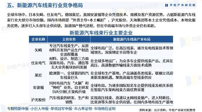 全球市场中,日本矢崎、住友电气,德国莱尼,美国安波福等企业凭借技术、规模及客户资源优势,占据新能源汽车线束行业大部分市场份额。国内市场则是“外资主导+本土崛起”,沪光股份、天海集团等本土企业凭借成本、本地化服务优势,逐步打入头部车企供应链,加速国产替代进程,但在中高端市场与外资企业仍有差距。