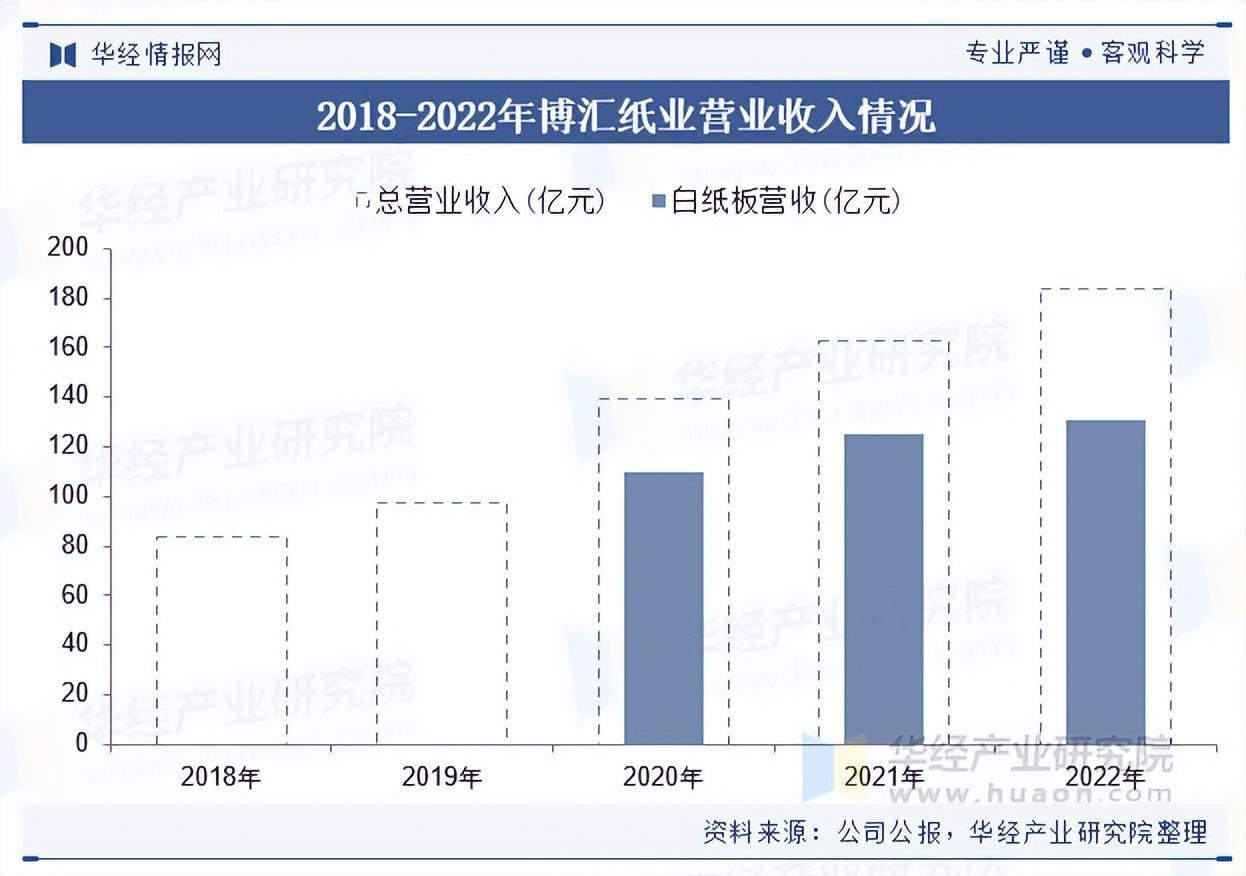 山东博汇纸业股份有限公司成立于1994年,专注于浆纸一体化的研发、生产、销售,主营产品为白纸板、瓦楞纸、箱板纸、石膏护面纸等,拥有山东、江苏两大生产基地,2022年的白纸板生产量与销售量分别为263.84万吨、255.47万吨。2022年,博汇纸业的白纸板营收为131.02亿元,占了企业总营收比例的71.35%。