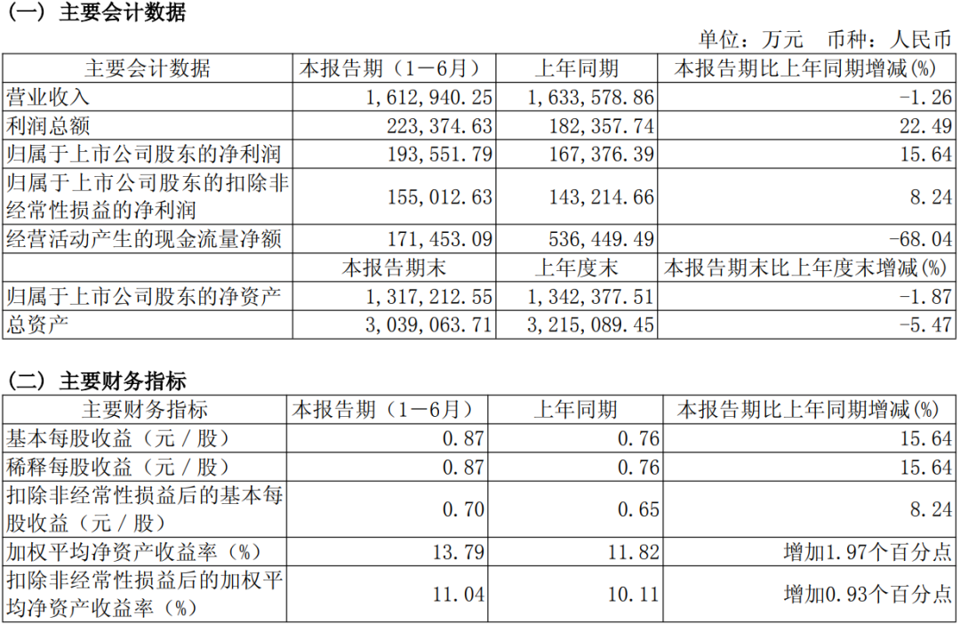 2025上半年,宇通客车实现营业收入161.29亿元,同比下滑1.26%。归属于上市公司股东的净利润19.36亿元,同比增长15.64%。扣除非经常性损益的净利润15.50亿元,同比增长8.24%。截至2025年6月底,公司总资产达到303.91亿元,与2025年末相比下滑5.47%。财务指标方面,2025上半年基本每股收益0.87元,同比增长15.64%。