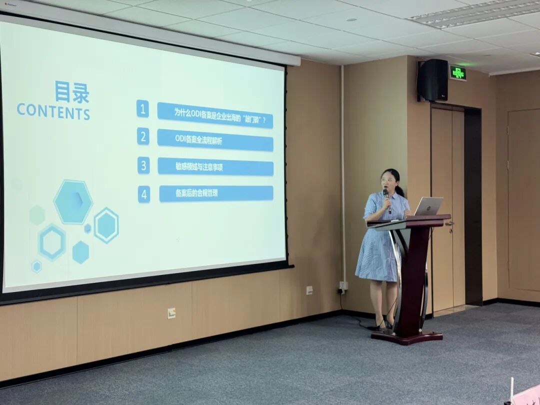 苏州工业园区一站式服务中心综合服务负责人介绍了园区为企业提供的“一站式”落地服务,包括注册、政策申请、人才引进与日常运营支持,强调园区致力于为企业海外扩展提供全周期、可落地的支撑方案。