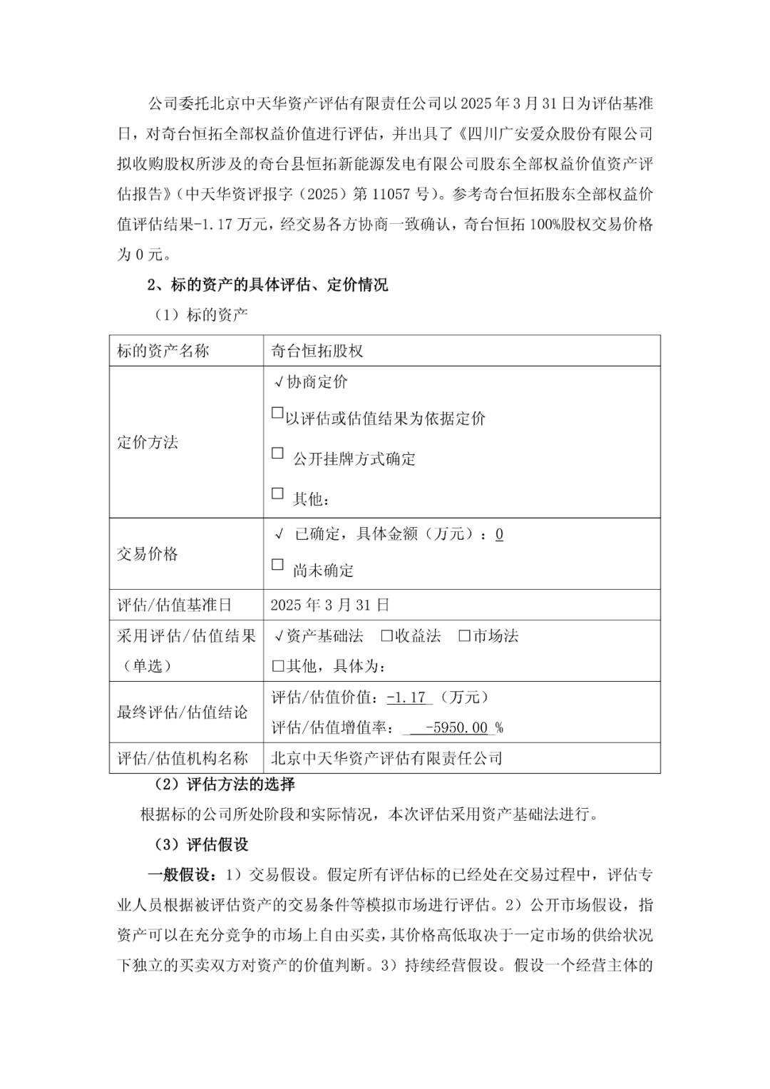 公告指出,为拓展风力发电业务,扩大绿能产业规模,促进综合能源业务转型,提升高质量发展水平,四川广安爱众股份有限公司拟以0元的价格收购奇台县恒拓新能源发电有限公司(以下简称“奇台恒拓”)90%股权。
