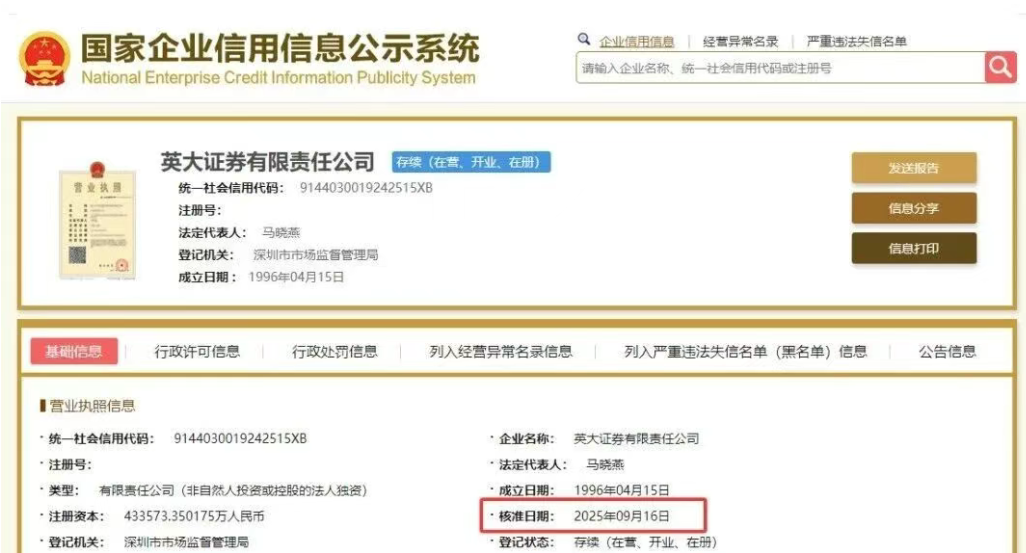 据《券商中国》2025 年 9 月 18 日消息,知情人士透露,英大证券已完成董事长及法定代表人调整:马晓燕已正式上任这两个职位,原董事长段光明不再担任相关职务。