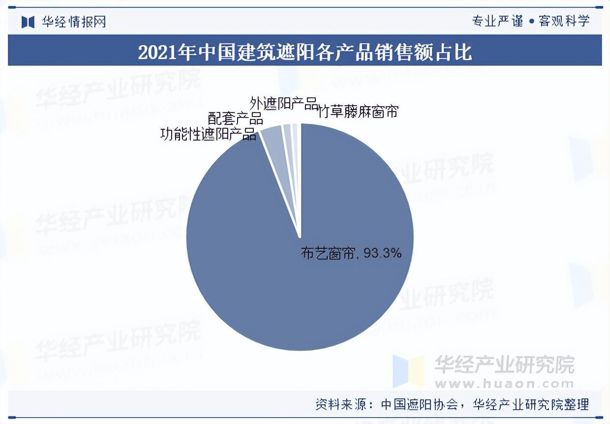 从品类看,我国建筑遮阳产品仍以布艺窗帘为主,2021年,我国传统布艺窗帘占比93.3%,功能性遮阳产品占比3.3%。功能性遮阳产品具备更多样化的功能和更优异的性能,预计未来将对传统遮阳产品形成消费替代。