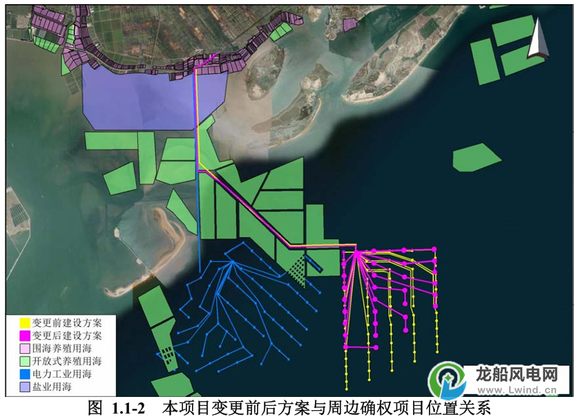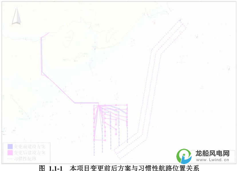 由于项目原场址占用了习惯性航路,为避让该习惯性航路,本项目对场址面积进行了缩减。另因项目周边已确权用海项目情况,为了尽可能避让已确权项目用海范围,对220kV海缆路由方案也进行了调整。