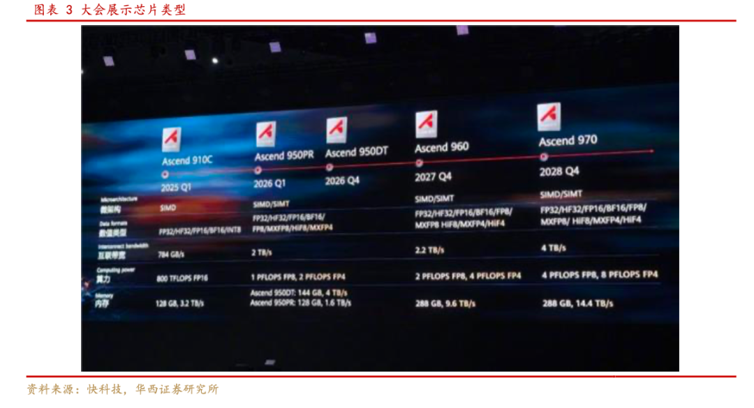 其中,2026年第一季度昇腾950PR对外推出,四季度推出昇腾950DT,2027年四季度推出昇腾960芯片,2028年四季度推出昇腾970芯片。