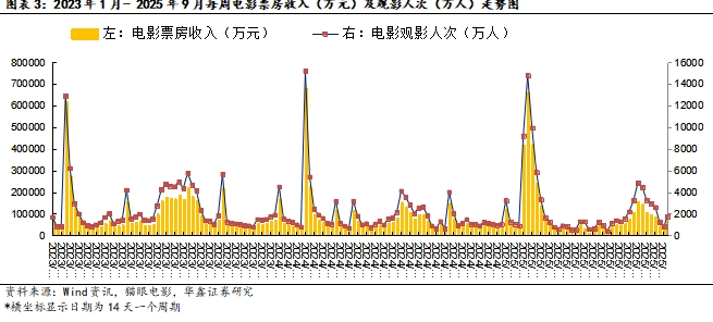 市场综述:2025 年9月15日-2025 年 9月19日,上证综指、深证成指、创业板指的涨跌幅分别为-1.30%、1.14%、2.34%。细分到传媒各子行业来看,网络游戏指数涨幅较大,网络彩票指数跌幅较大。周涨跌幅个股中,涨幅 Top3 分别为星辉娱乐、完美世界、欢喜传媒,分别上涨25.95%、14.55%、13.85%;跌幅 Top3 分别为吉视传媒、粤传媒、文投控股,分别下跌23.52%、14.43%、11.54%。