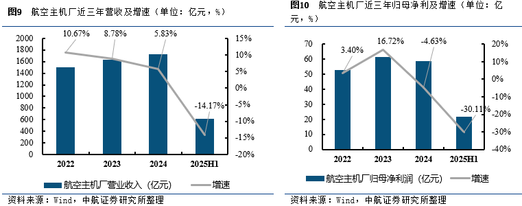 (一)航空主机厂:产品结构及交付节奏影响,业绩短期承压