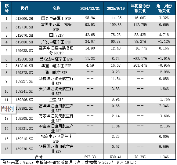 图26 近期军工类ETF基金(含通航、航空航天、卫星等大军工赛道)份额变化(单位:亿份)