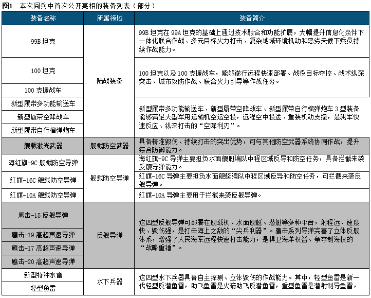 本次阅兵中亮相的装备是继2019年国庆70周年阅兵式后,我军新一代武器装备的集中亮相,特点包括: