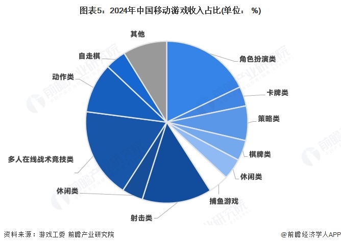 多人在线战术竞技游戏收入占比最大,占据移动游戏约17.99%