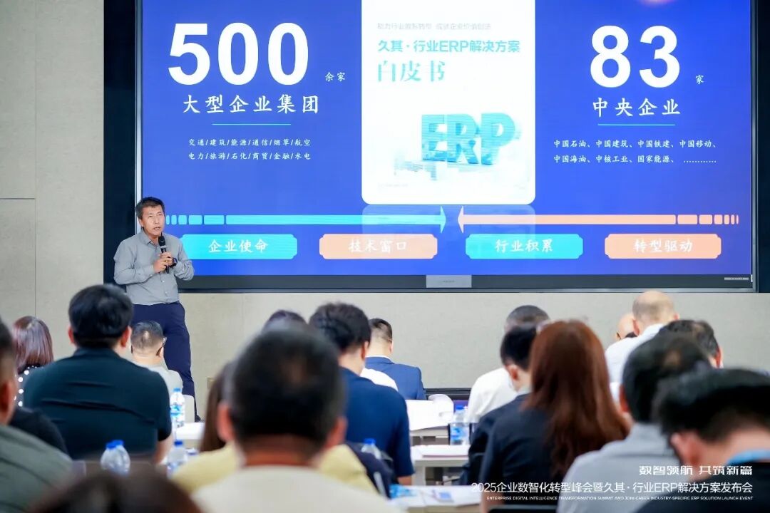 当前,国家“十五五”数字化规划明确将行业特色数智解决方案作为转型核心抓手,《“十四五”数字经济发展规划》亦要求推动产业数字化转型。久其软件执行总裁 肖兴喜 在致辞中指出,国内企业数智化转型已进入“深水区”,集团管控与精益管理的双重诉求、AI等新技术的价值重构,让“与战略同频、与业务贴合”的ERP系统成为刚需。此次发布的久其行业ERP解决方案,正是久其响应国家信创攻坚与发展新质生产力的战略布局。