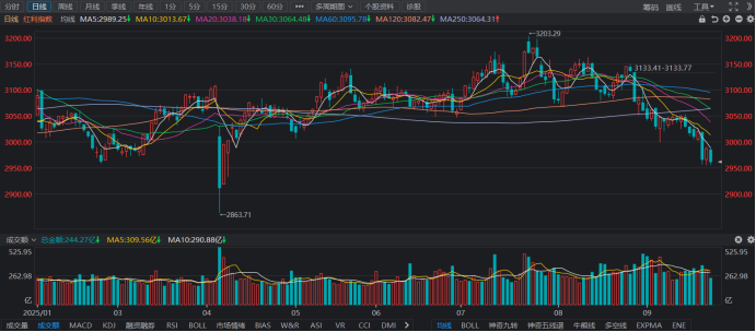 进入9月中下旬以来,红利指数加速调整,截至今日收盘,其目前年线已经转绿,且年内跌幅扩大至7.5%,相当于仅跑赢了9%市场个股同期表现,同时在主要指数中跌幅居首。若较之其4月7日录得的年内最低点位(2863.71点),红利指数目前收盘点位(2962.03点)距离创年内新低仅有3.3%的差距,同时较去年9月时低点的涨幅已收窄至9.7%。