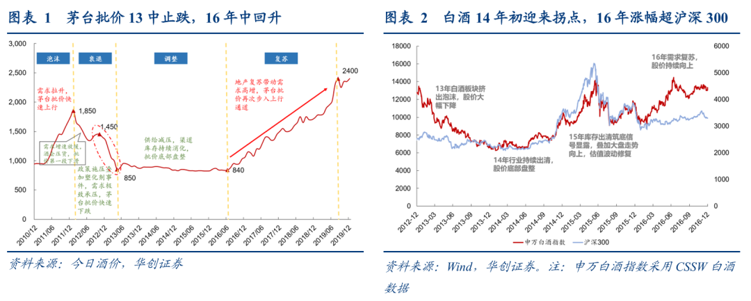 16年初行业信心逐步提升,筑底后春节超预期。经历15年供需再平衡后,16年初行业周期筑底已基本完成,信心开始逐步提升,特别在需求侧好转,16年春节需求超预期,茅台时任党委书记李保芳在区域内部经销商会上指出“经销商的好日子来了,茅台酒价格可能会过1000元”。