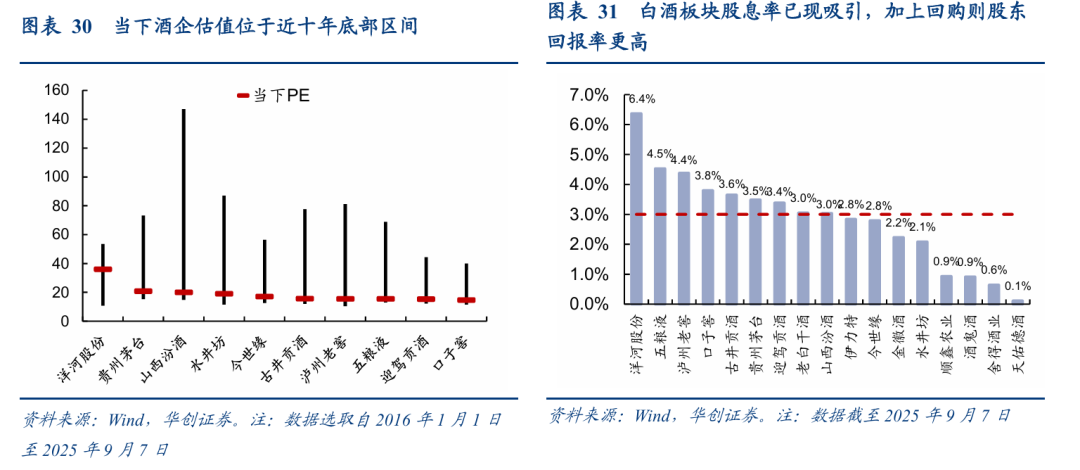 头部酒企股息率(或加上回购注销测算股东回报率)当前已现吸引力。酒企作为优质红利资产的吸引力正在放大。同时考虑茅五等龙头企业占沪深300、上证50指数权重,ETF资金入市将对估值起到托底作用。