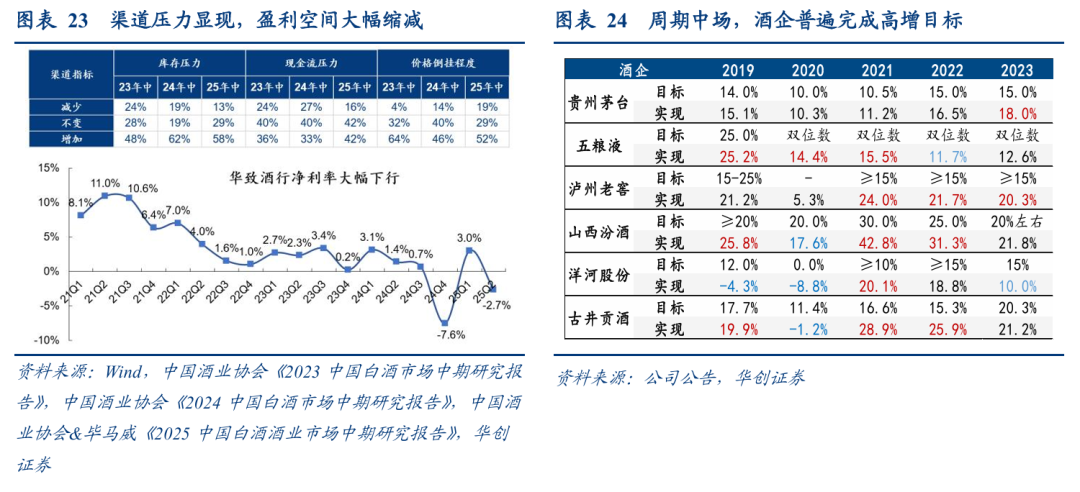 行业各类酒企出清节奏不一:全行业三季度起或将全面放弃年内报表目标,开启报表压力加速释放。