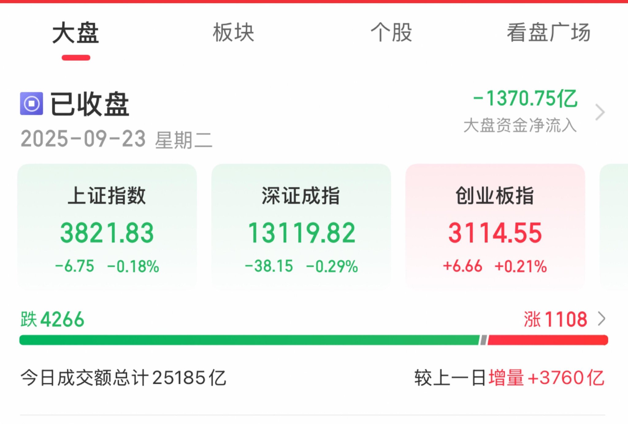 A股三大指数今日涨跌不一,截至收盘,上证指数跌0.18%,深证成指跌0.29%,创业板指涨0.21%,北证50跌2.63%。沪深京三市全天成交额25186亿元,较上日放量3760亿元。全市场超4200只个股下跌。