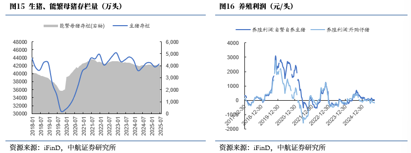 8月三方生猪产能数据调减,相关部门引导继续调减。据卓创资讯,25年8月样本企业能繁母猪存栏环比下滑1.11%,主要原因是政策调控、环保收紧及仔猪价格低迷产生的去产能现象。近期,生猪产能调控企业座谈会在北京召开,牧原股份、温氏股份等多家企业参会,会上提及落实生猪出栏称重等内容。此外,有关部门已召开“生猪生产调度会”,计划将全国能繁母猪存栏量在现有基础上调减100万头左右,即降至约3950万头。随着行业“反内卷”推进,产能进一步优化,生猪价格行情预期和板块走势也望趋势抬升。