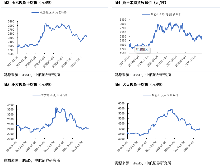 玉米:玉米现货平均价周环比跌0.24 %,玉米期货价格周环比跌5.82%。