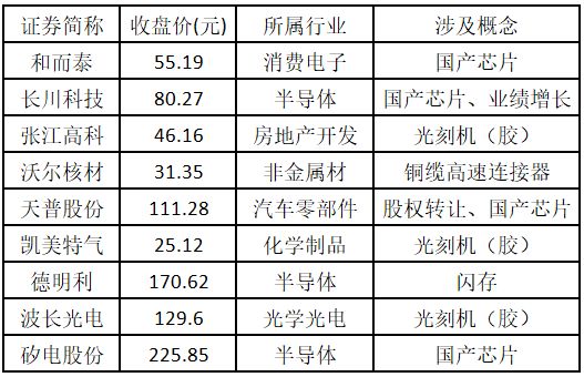 从涨势强度来看,涨停板个股中,股价创出历史新高个股共有9只,包括和而泰、长川科技、张江高科、沃尔核材、天普股份、凯美特气、德明利、波长光电、矽电股份。