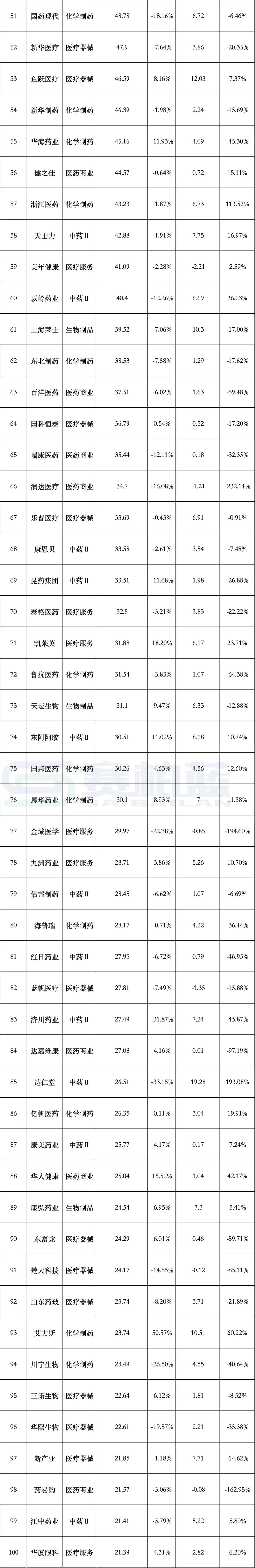 医疗商业上市公司31家,营收超过5100亿元,同比微降0.2%,归属母公司净利润120亿元,同比微增7.21%。