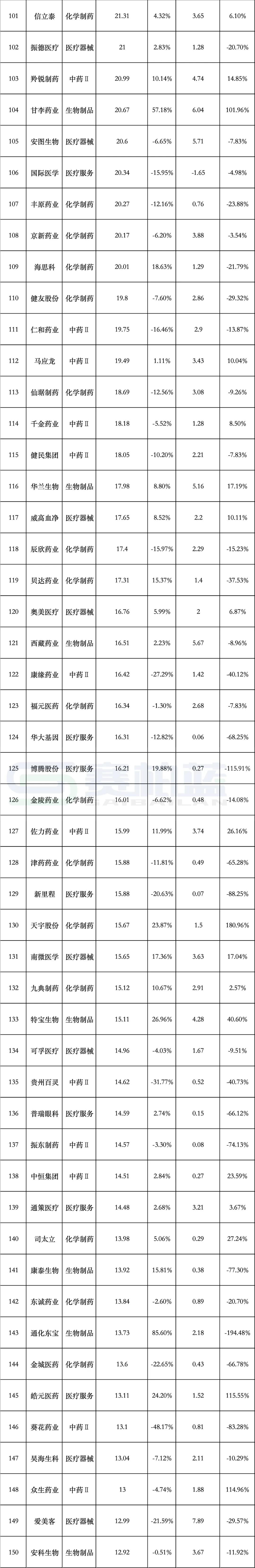 在净利润增长的企业中,甘李药业同比增长1倍,净利润达6亿元,辽宁成大净利润超7亿元,同比增长超过56%。此外,特宝生物由于新品上市进入快速增长期,营收和利润均实现较大幅度增长。