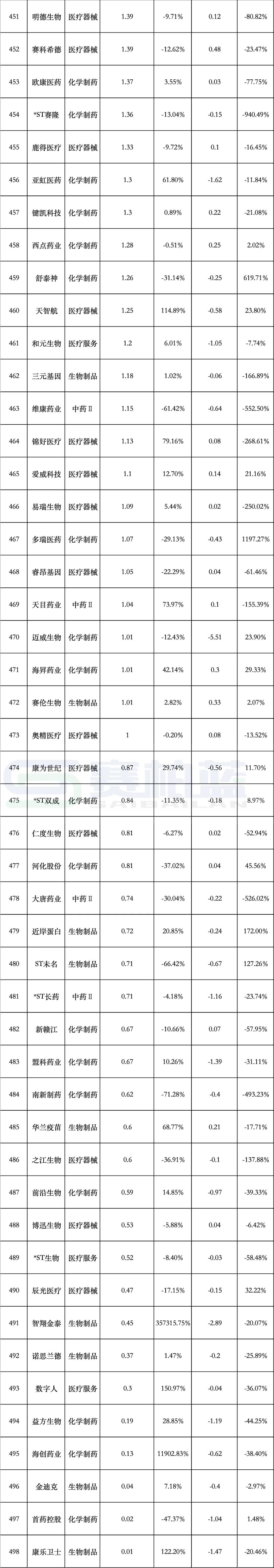 附:498家药企最新半年业绩详单