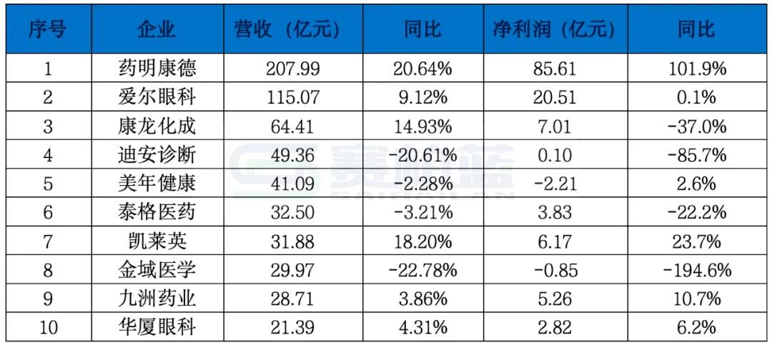 2025年上半年,医疗器械行业整体营收与利润同比双双下滑,未能延续2024年增长势头。营业收入排名前十的企业入围门槛超过24亿元,企业间成长性呈现显著分化,其中保持增长与出现下滑的企业各占五家。