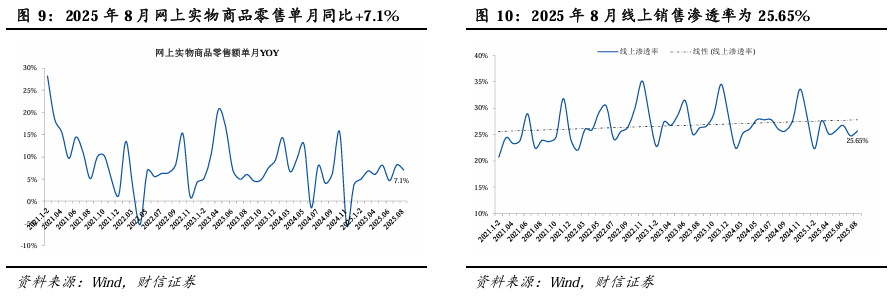 8月,全国网上零售额12993亿元,同比增长12.35%。其中,实物商品网上零售额10174亿元,增长7.10%,占社会消费品零售总额的比重为25.65%,占比较上月有所回升。