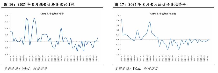 8月,上年同期基数走高叠加本月食品价格涨幅低于季节性水平导致CPI同比由平转降,主要是食品价格较低,扣除食品和能源价格的核心CPI连续第4个月扩大;CPI环比持平,低于季节性水平约0.3个百分点,其中食品价格环比上涨0.5%。