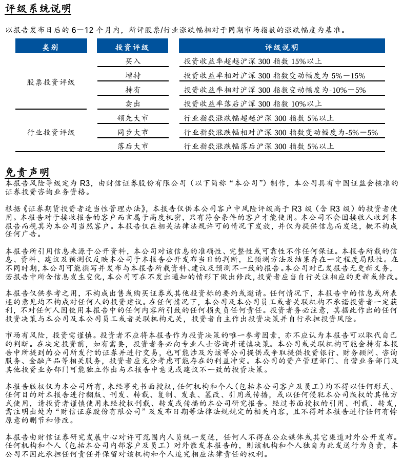 本订阅号不是财信证券研究报告的发布平台,所载内容均来自财信证券已正式发布的研究报告或对报告进行的跟踪与解读,订阅者若使用所载资料,有可能会因缺乏对完整报告的了解而对其中关键假设、评级、目标价等内容产生误解。提请订阅者参阅财信证券已发布的完整证券研究报告,仔细阅读其所附各项声明、信息披露事项及风险提示,关注相关的分析、预测能够成立的关键假设条件,关注投资评级和证券目标价格的预测时间周期,并准确理解投资评级的含义。